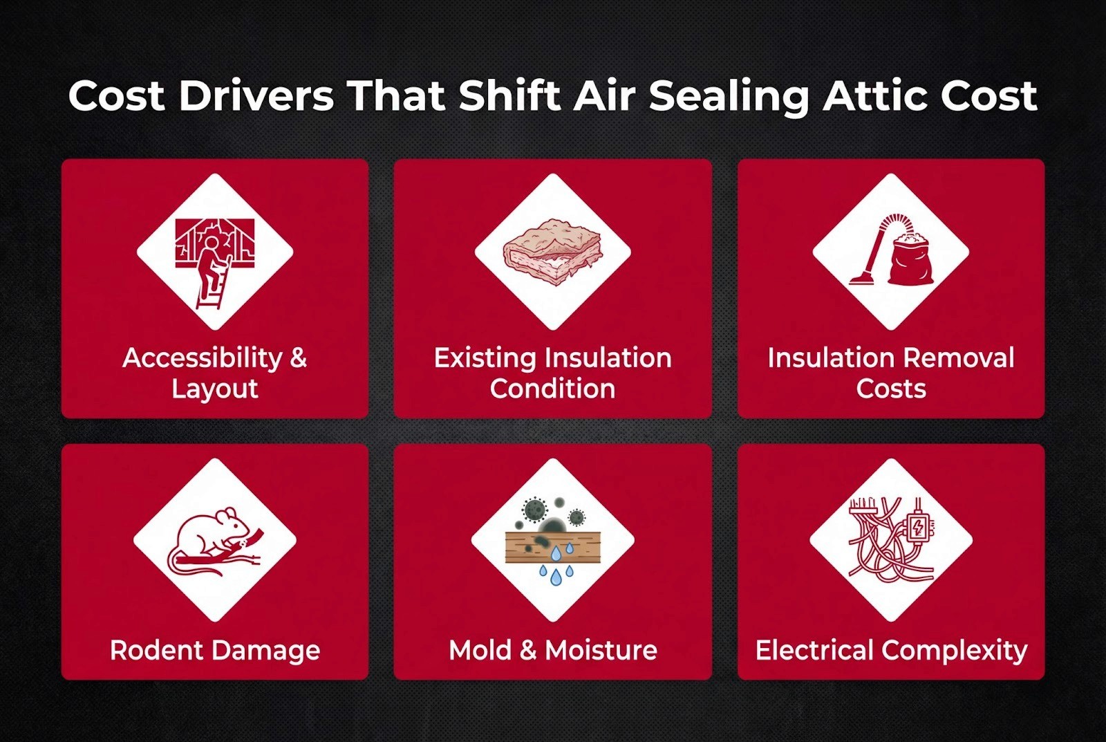 Accessibility, moisture, and rodents drive major cost swings.