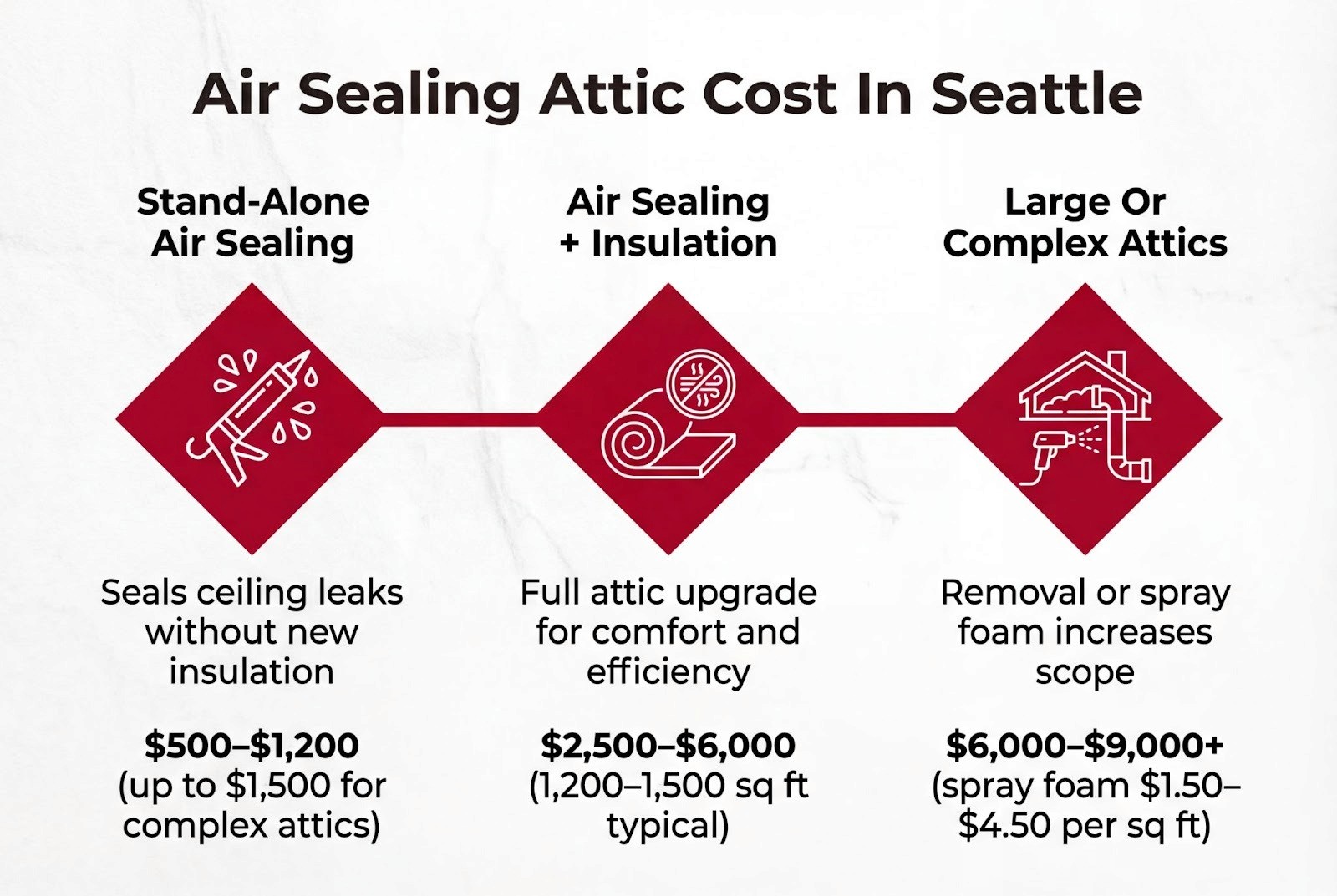 Stand-alone air sealing typically runs $500–$1,200 in Seattle.