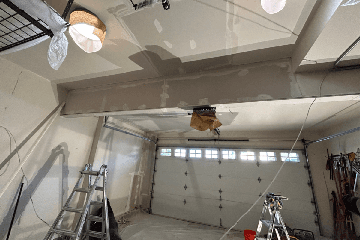 Most garages finish in a single day thanks to hot mud, unless the job includes major repairs, soundproofing, or upgraded materials. Ceilings over 10 feet or moisture damage can extend the timeline slightly.