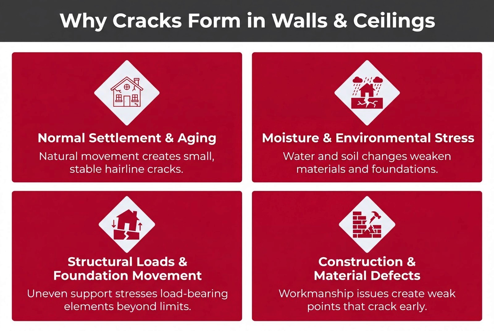 Understanding cracks in walls and ceilings, and when to worry, starts with understanding why they form.
